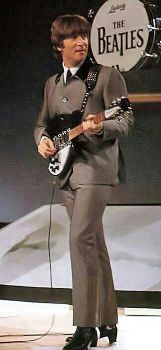 Am 8.Februar 1964 veranstaltete Rickenbacker eine Vorführung für die Beatles im Savoy-Hilton, New York. John bestellte sich neben der Rickenbacker 325 eine 12-saitige Rickenbacker 325-12, welche er im April geliefert bekam. John verwendete sie nur kurz im Sommer 1964 als Ersatz für die 6-saitge Rickenbacker 325, wie links im Bild bspw. auf Tour in der TV-Sendung "The Beatles in Nederland" am 5.Juni 1964. Hier auch erstmals mit dem Phyton-Gitarrengurt von Vox, den ersten für John angefertigt.